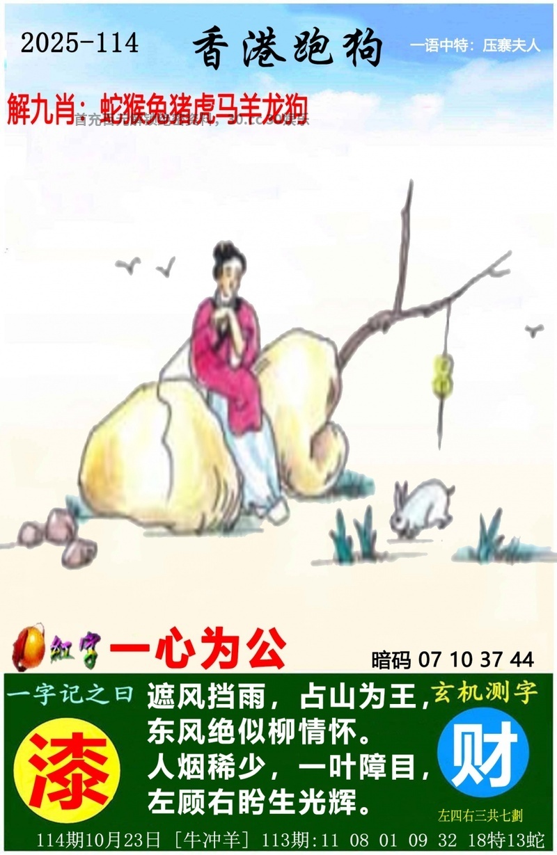 | 114期:八肖【虎兔马蛇狗羊猪牛】开:兔39准 |