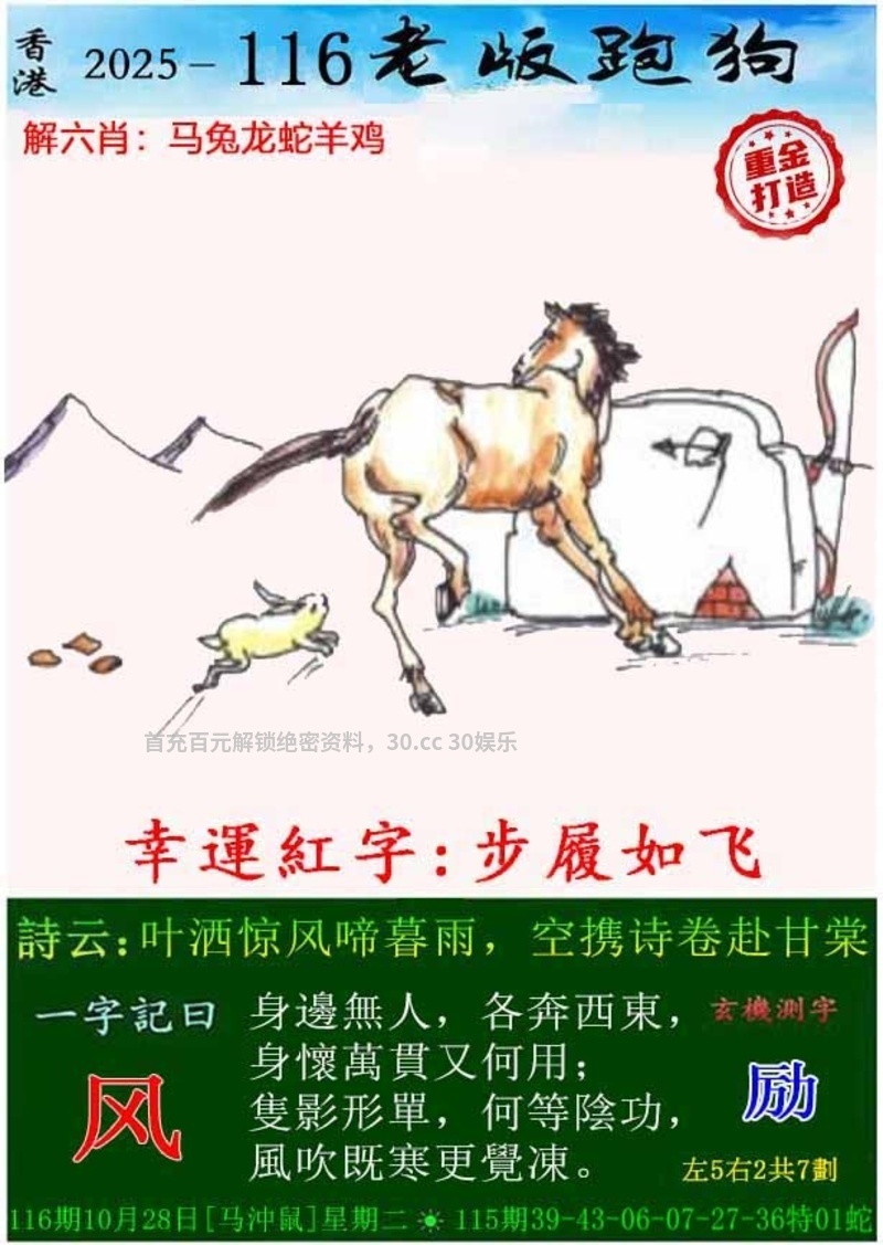 | 116期:绝杀③肖【虎狗兔】特开:马24准 |
